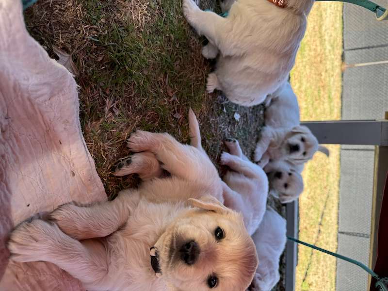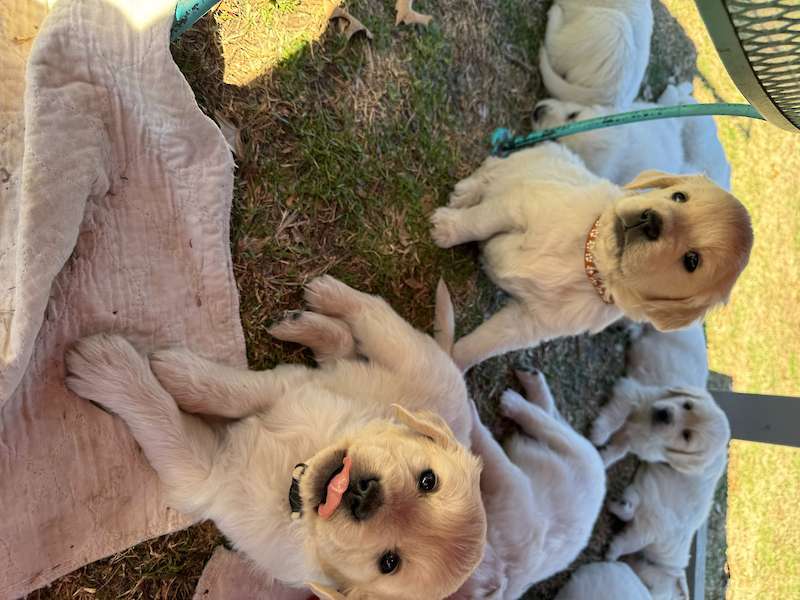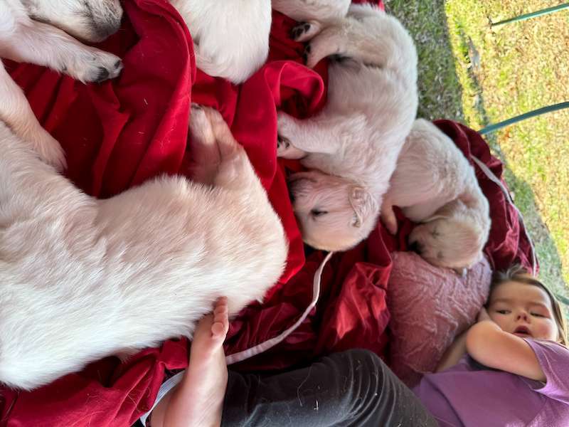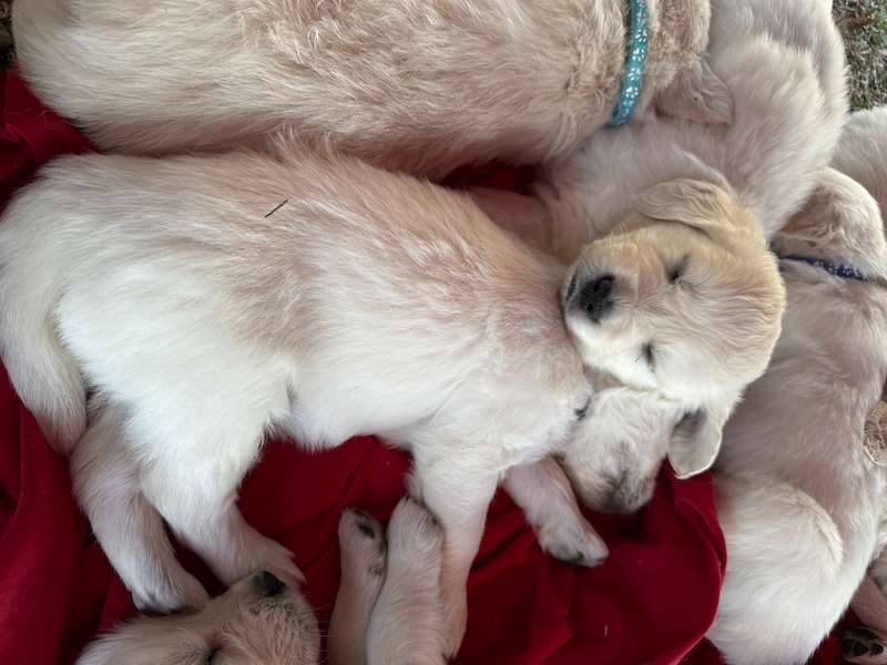 We are thankful for Amos and Mabel's 12 healthy puppies born on 1-23-25. They are both amazing golden's with Champion bloodlines. Mabel is the best mother we have had in our lifetime. She has been absolutely amazing throughout this whole process.